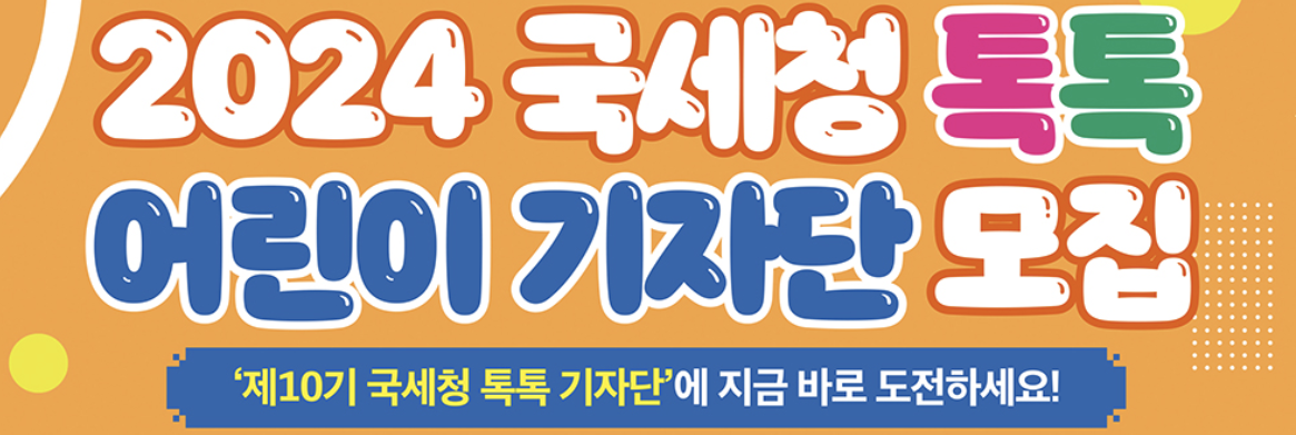 아래는 국세청 톡톡 어린이 기자단 모집에 관한 내용을 정리해두었으니 많은 참고 부탁드립니다.